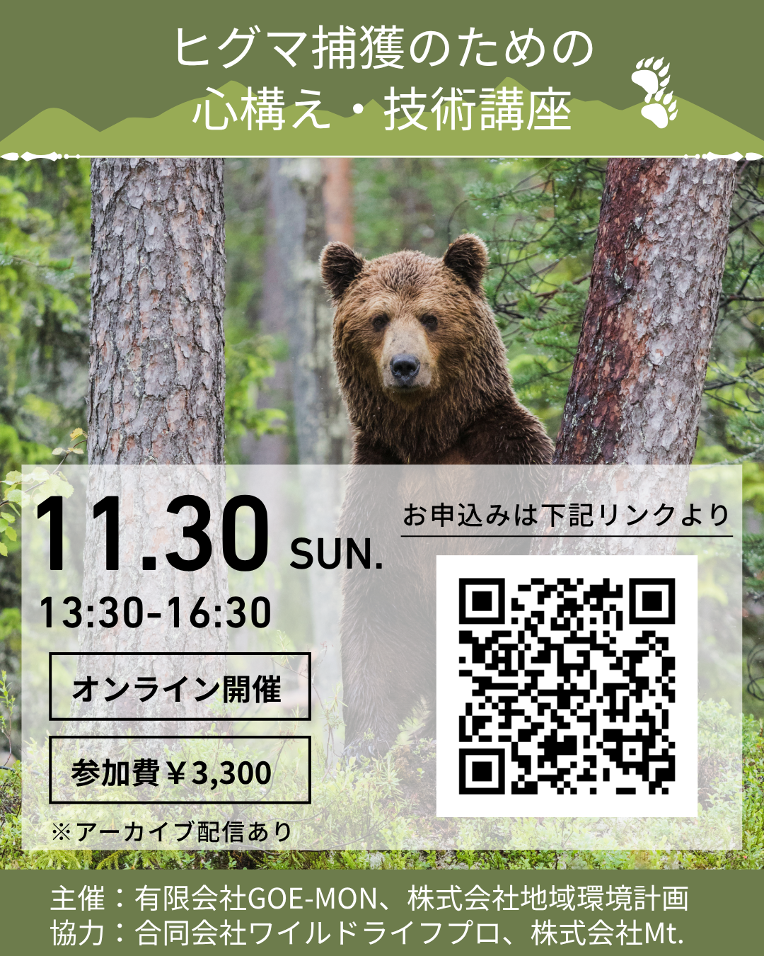 HOME > お知らせ > お知らせ 2025年11月30日「ヒグマ捕獲のための心構え・技術講座」オンラインセミナー 2025年10月21日 2025年10月22日 お申込みはコチラから Post Share Pocket Hatena LINE URLコピー -お知らせ